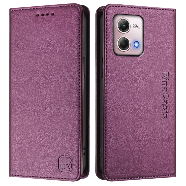 Funda de Cuero Motorola Moto G Stylus 4G 2023 Rc01 Doble Pliegue Succión Magnética (Violeta)