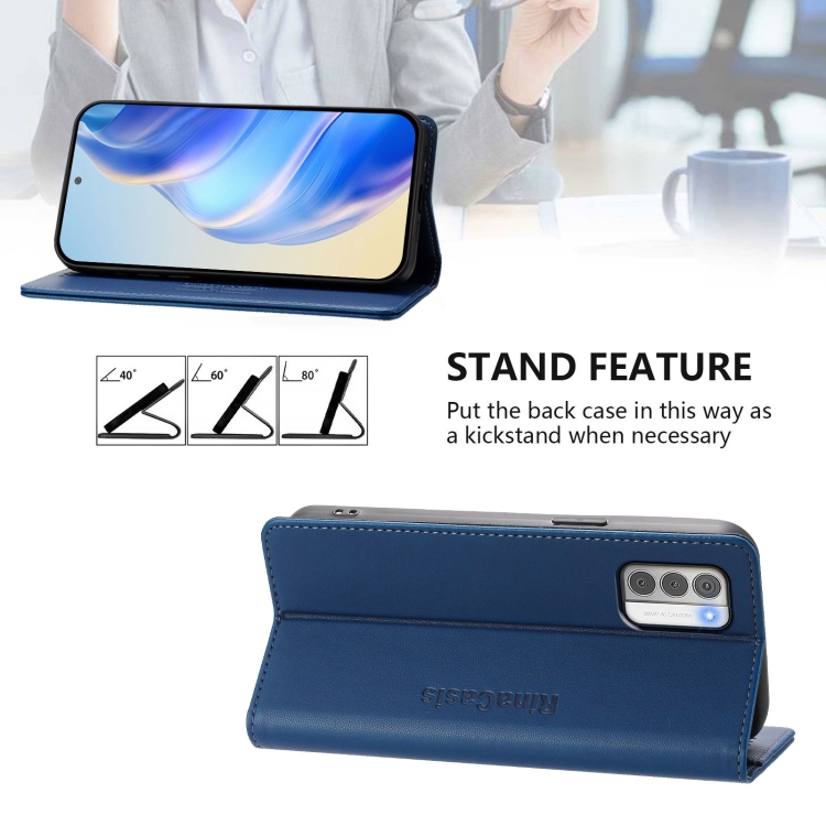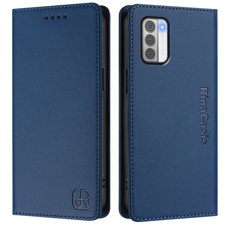 Funda de Cuero para Teléfono Nokia G42/G310 Rc01 con Doble Pliegue y Succión Magnética (Azul Oscuro)