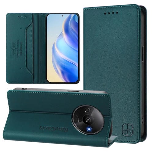 Funda de Cuero con Doble Pliegue y Succión Magnética para Teléfono Redmi A3 / Xiaomi Poco C61 4G Global Rc01 (Verde Oscuro)