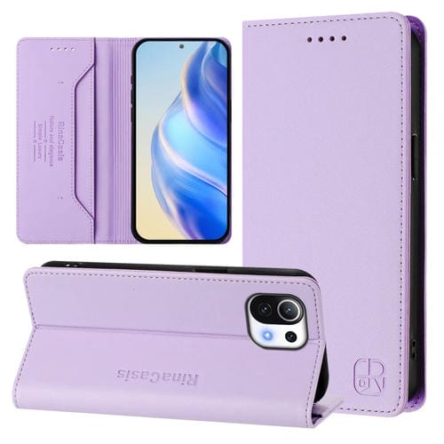 Funda de Cuero con Doble Pliegue y Succión Magnética para Teléfono Xiaomi Mi 11 Lite / Mi 11 Lite 5G Rc01 (Morado Claro)