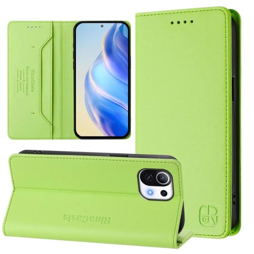 Funda de Cuero con Doble Pliegue y Succión Magnética para Teléfono Xiaomi Mi 11 Lite / Mi 11 Lite 5G Rc01 (Verde Hierba)