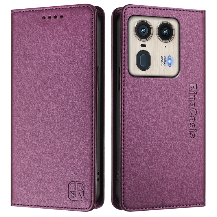 Funda de Cuero con Doble Pliegue y Succión Magnética Rfid para Motorola Edge 50 Ultra / X50 Ultra Rc01 (Violeta)