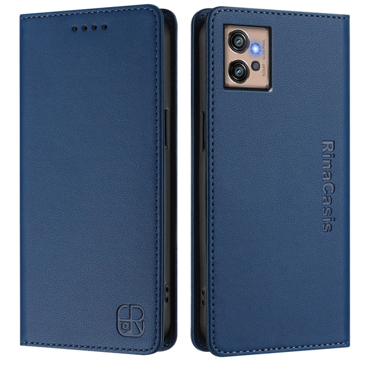 Funda de Cuero con Doble Pliegue y Succión Magnética Rfid para Motorola Moto G32 Rc01 (Azul Oscuro)