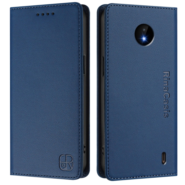 Funda de Cuero con Doble Pliegue y Succión Magnética Rfid para Nokia C10/C20 Rc01 (Azul Oscuro)