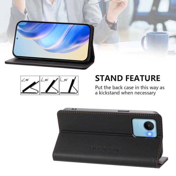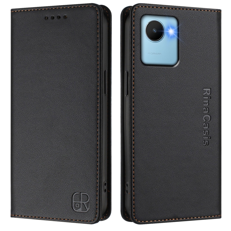 Funda de Cuero con Doble Pliegue y Succión Magnética Rfid para Realme C30 4G / Narzo 50I Prime / C30S Rc01 (Negro)