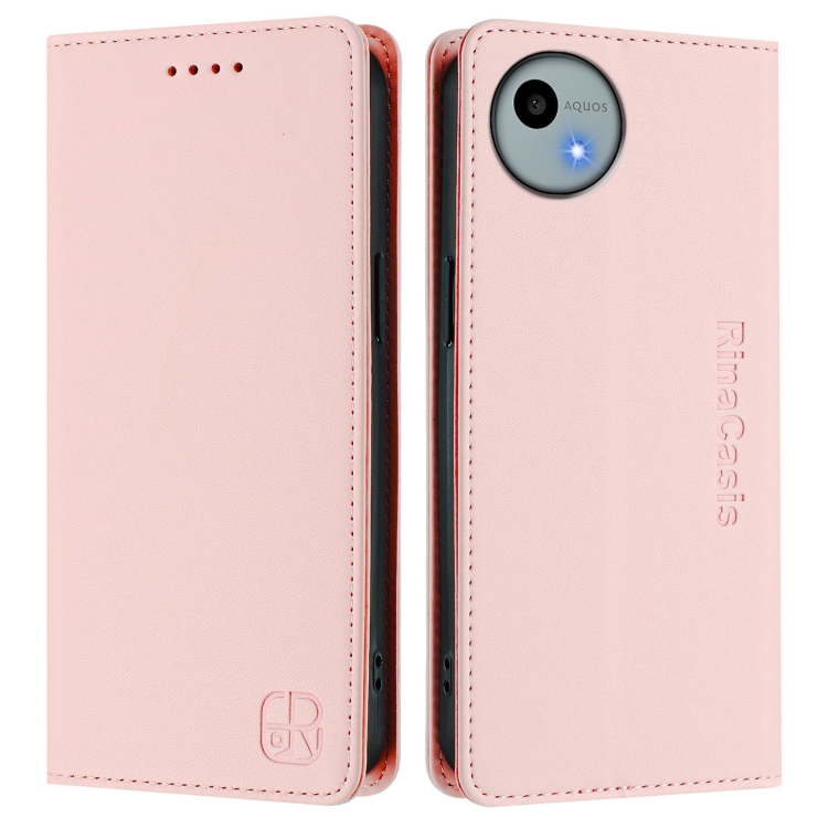 Funda de Cuero para Sharp Aquos Wish4 Sh-52E Rc01 con Doble Pliegue y Succión Magnética Rfid (Rosa)