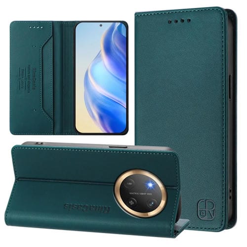 Funda de Cuero Rfid para Honor X9C Global Rc01 con Doble Pliegue y Succión Magnética (Verde Oscuro)