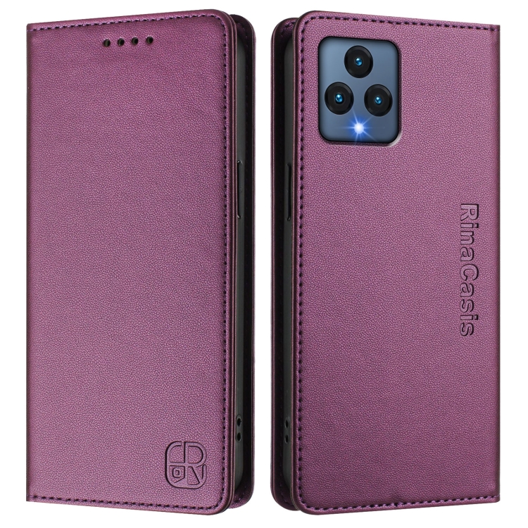 Funda de Cuero T-Mobile Revvl 6 5G/6X 5G Rc01 con Doble Pliegue y Succión Magnética Rfid (Violeta)