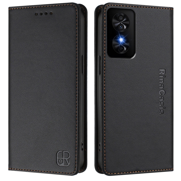 Funda de Cuero con Doble Pliegue y Succión Magnética RFID para TCL 50 Se Rc01 (Negro)