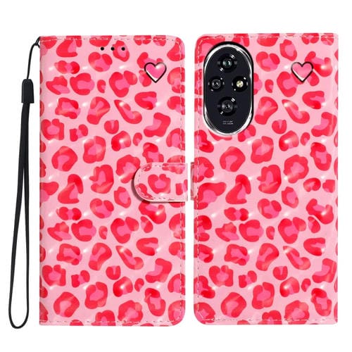 Funda de Cuero para Honor 200 con Estampado 3D Leopardo Rosa