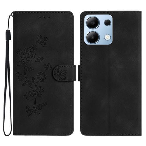 Funda de Cuero con Estampado de Flores y Mariposas para Redmi Note 13 4G (Negra)