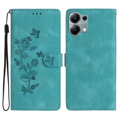 Funda de Cuero con Estampado de Flores y Mariposas para Redmi Note 13 Pro 4G (Azul Cielo)