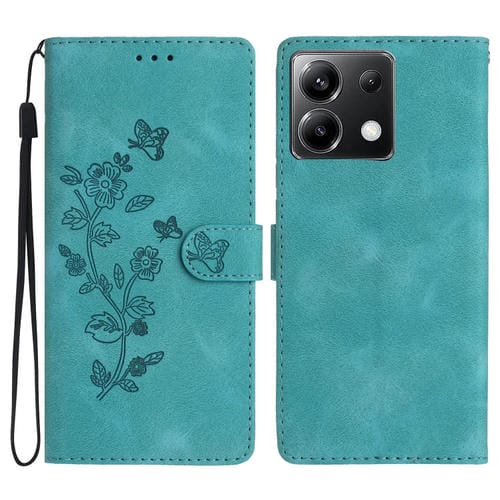 Funda de Cuero con Estampado de Flores y Mariposas para Xiaomi Poco X6 (Azul Cielo)