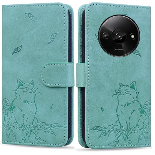 Funda de Cuero con Estampado de Gato para Redmi A3 (Verde)