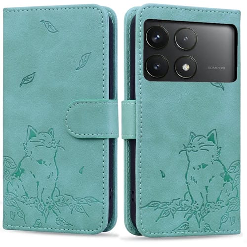 Funda de Cuero con Estampado de Gato para Xiaomi Poco F6 Pro 5G (Verde)