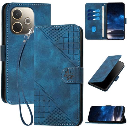 Funda de Cuero con Estampado de Mariposas En Relieve y Cordón para Oppo A5 Pro 5G (Azul Oscuro)