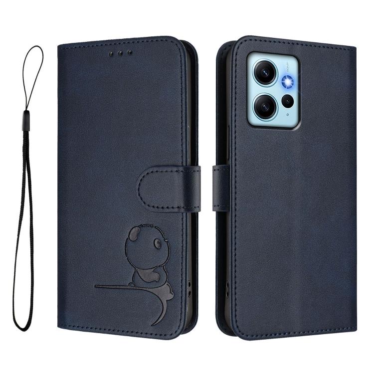 Funda de cuero con estampado RFID y cordón para Redmi Note 12 4G Global Litter Panda (azul)