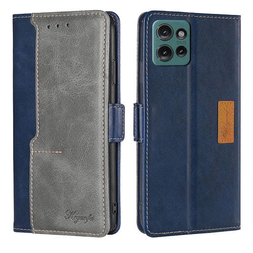 Funda de Cuero con Hebilla Lateral y Contraste para Motorola Edge 50 5G (Azul + Gris)