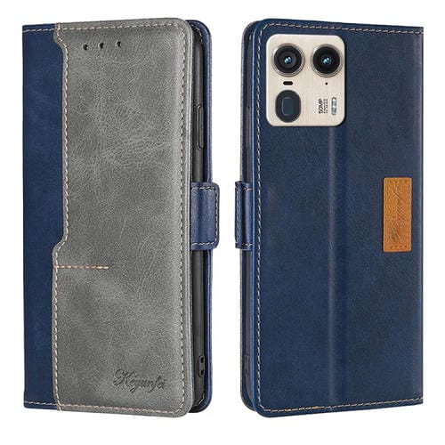 Funda de Cuero con Hebilla Lateral para Motorola Edge 50 Ultra (Azul + Gris)