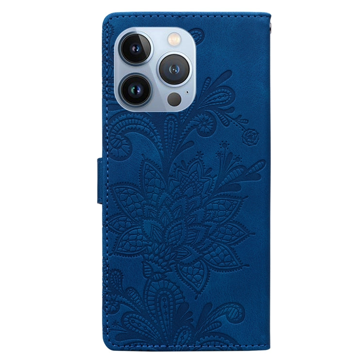 Funda de Cuero con Hebilla Magnética y Encaje Floral para iPhone 16 Pro Max (Azul)