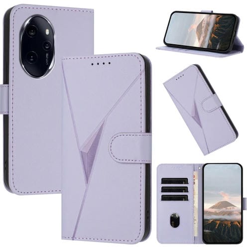 Funda de Cuero con Hebilla y Diseño de Triángulos para Honor 100 Pro (Morado Claro)