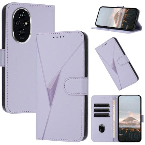 Funda de Cuero con Hebilla y Diseño de Triángulos para Honor 200 Global (Morado Claro)