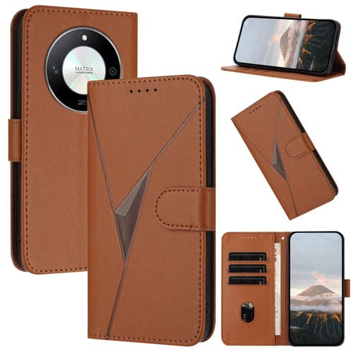 Funda de Cuero con Hebilla y Diseño Triangular para Honor X50 y Honor X9B (Marrón)