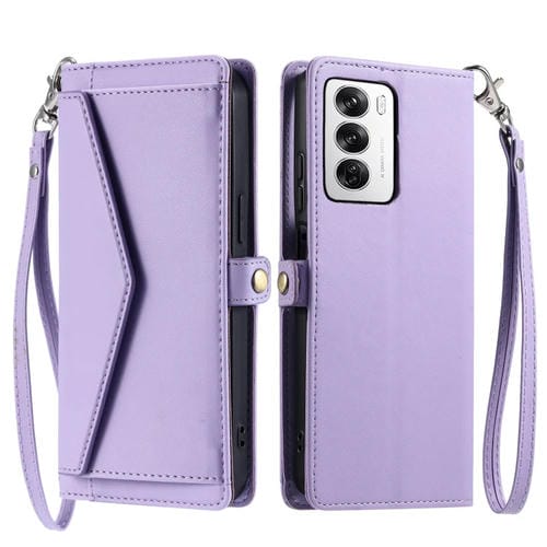 Funda de Cuero con Ranura para Múltiples Tarjetas y Billetera Global para Oppo Reno12 5G con Cordón (Morado)