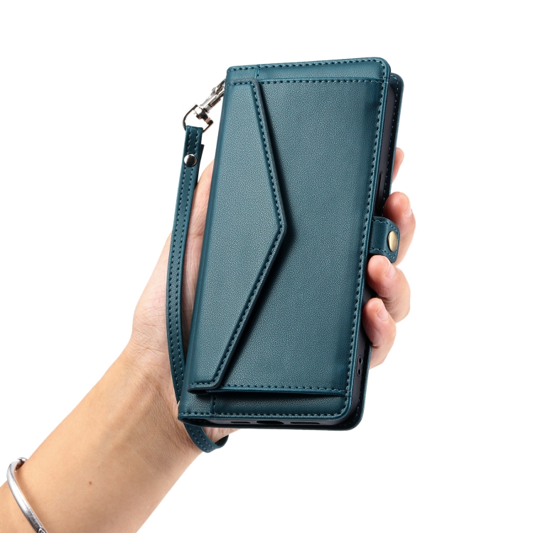 Funda de Cuero para iPhone 16 Pro Ranura Tarjetas Cordón (Verde)