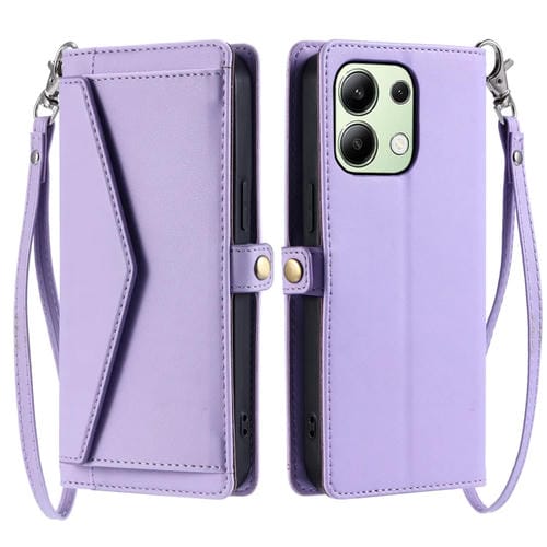 Funda de Cuero con Ranura para Múltiples Tarjetas y Cordón para Redmi Note 13 4G Global Wallet (Morado)