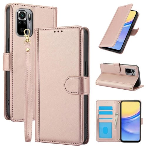 Funda de Cuero con Ranuras para Tarjetas y Diseño de Piel Sintética con Cordón Doble para Redmi Note 10 4G/Note 10S 4G (Oro Rosa)
