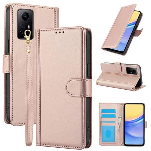 Funda de Cuero con Ranuras para Tarjetas y Tacto de Piel Global para Redmi Note 11 4G/Note 12S 4G con Cordón Doble (Oro Rosa)