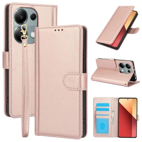 Funda de Cuero con Ranuras para Tarjetas y Tacto de Piel Global para Redmi Note 13 5G con Cordón Doble (Oro Rosa)