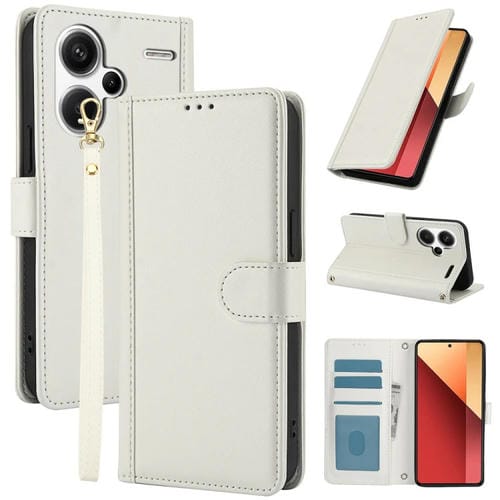 Funda de Cuero con Ranuras para Tarjetas y Tacto de Piel Global para Redmi Note 13 Pro+ 5G con Cordón Doble (Blanco)