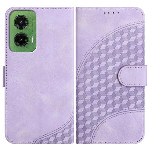 Funda de Cuero con Relieve de Cabeza de Elefante para Motorola Moto G35 Yx0060 con Cordón (Morado Claro)