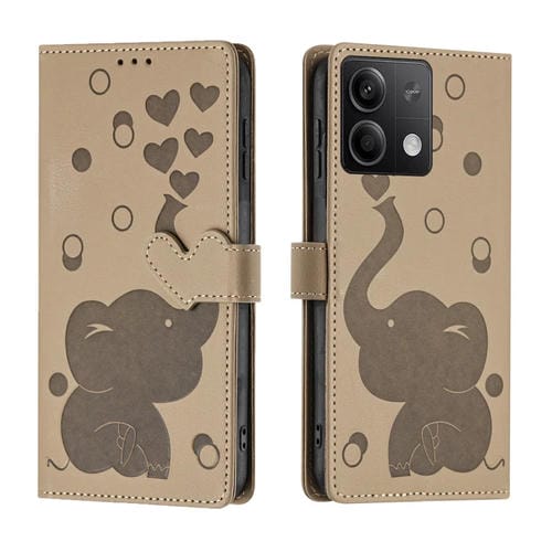 Funda de Cuero con Relieve de Elefante de Dibujos Animados para Redmi Note 13 Pro 5G (Caqui)