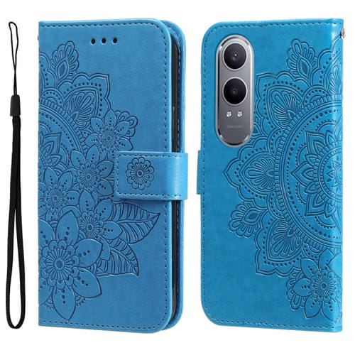 Funda de Cuero con Relieve de Flores de 7 Pétalos para Oppo K12X (Azul)
