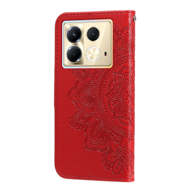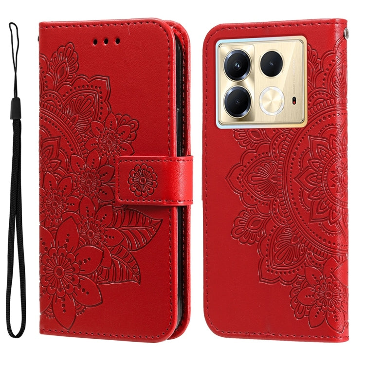 Funda de Cuero con Relieve de Flores de Siete Pétalos para Infinix Note 40 5G (Rojo)