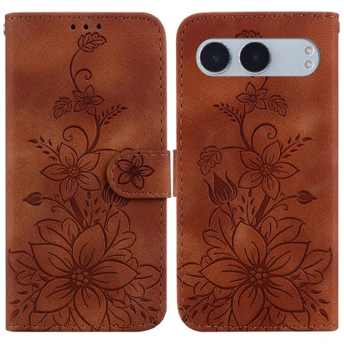 Funda de Cuero con Relieve de Lirios para OnePlus Nord 4 (Marrón)