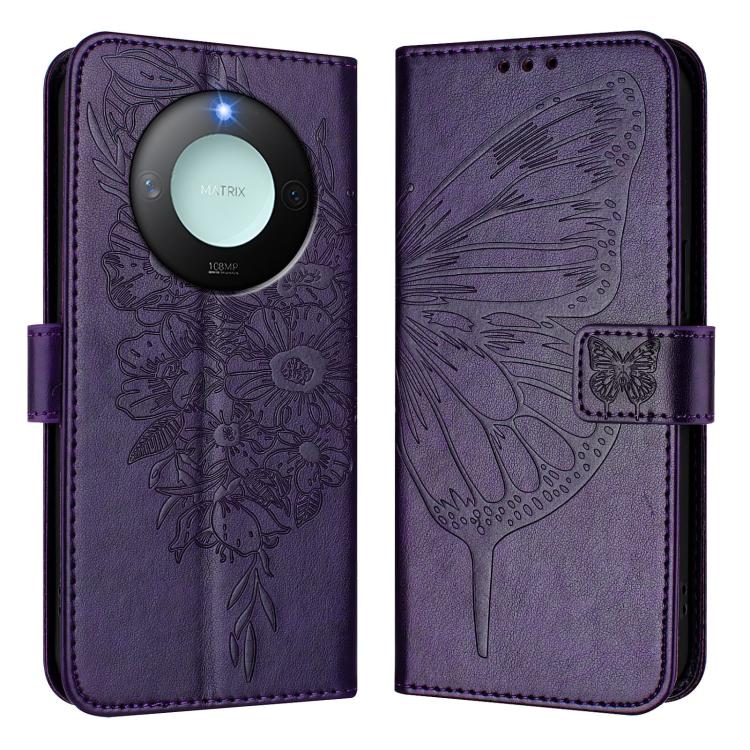 Funda de Cuero con Relieve de Mariposa para Honor X9C Smart Global (Morado Oscuro)