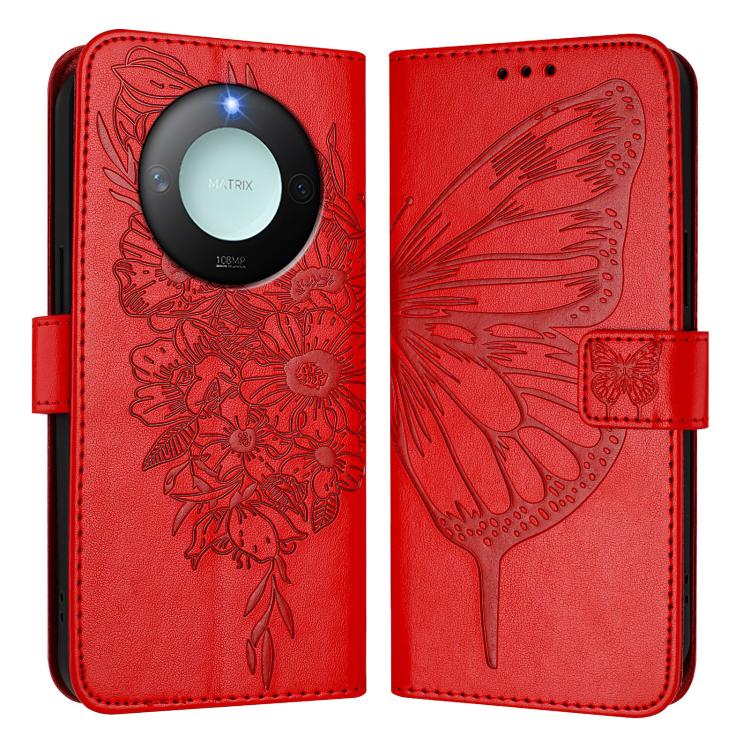 Funda de Cuero con Relieve de Mariposa para Honor X9C Smart Global (Roja)