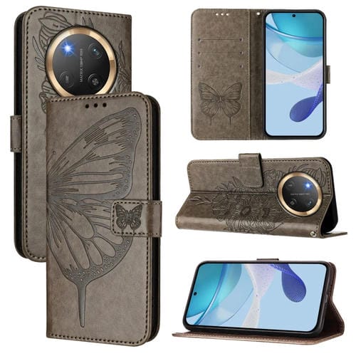 Funda de Cuero con Mariposas en Relieve para Honor X9C 5G (Gris)