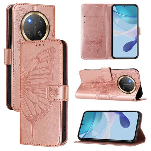 Funda de Cuero con Mariposas en Relieve para Honor X9C 5G (Oro Rosa)