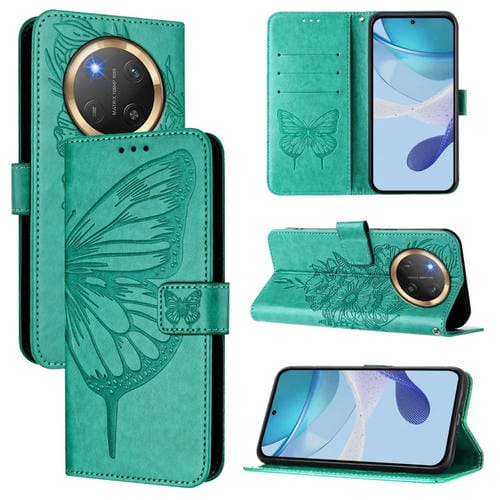 Funda de Cuero con Mariposas en Relieve para Honor X9C 5G (Verde)