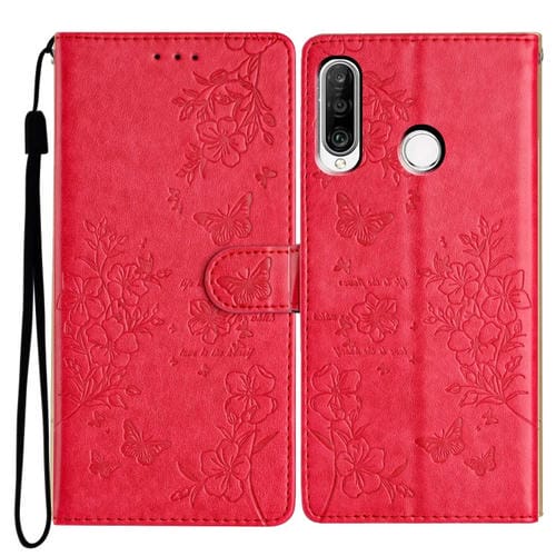 - 1x Funda de Cuero con Relieve Mariposa y Flor para Huawei P30 Lite (Rojo)