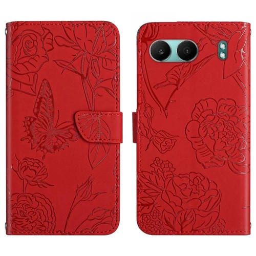 Funda de Cuero con Relieve Peonía y Mariposa para OnePlus Nord 4 5G (Rojo)