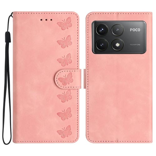 Funda de Cuero con Relieve de Siete Mariposas para Xiaomi Poco F6 Pro (Rosa)