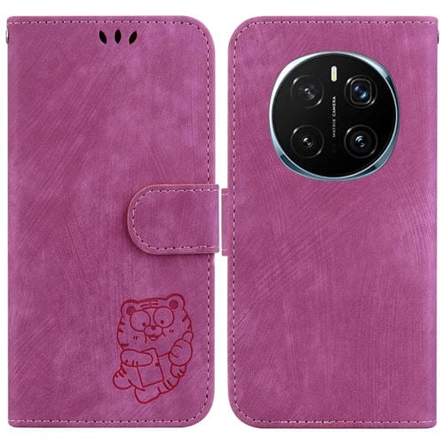 Funda de Cuero con Relieve de Tigre para Honor Magic7 Pro (Rosa)
