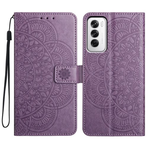 Funda de Cuero con Relieve Floral para Oppo Reno12 Global (Morado)