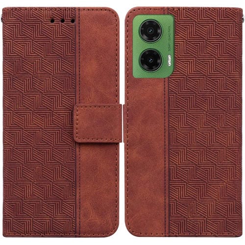 Funda de Cuero con Relieve Geométrico para Motorola Moto G35 (Marrón)